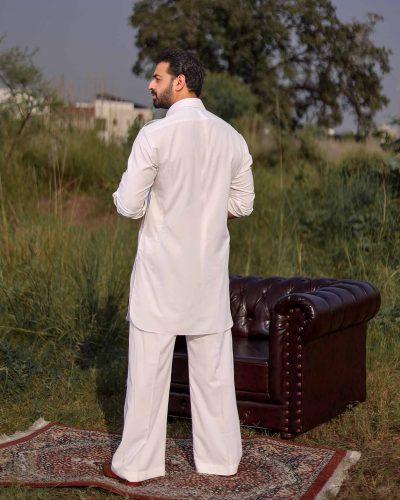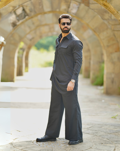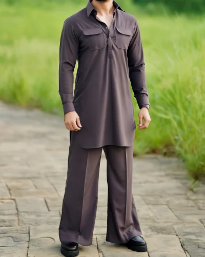 A timeless classic with a modern twist — this farshi kurta shalwar blends traditional elegance with contemporary tailoring. Crafted from breathable yet durable fabric, it’s perfect for year-round wear, keeping you cool in summer and comfortable in winter.